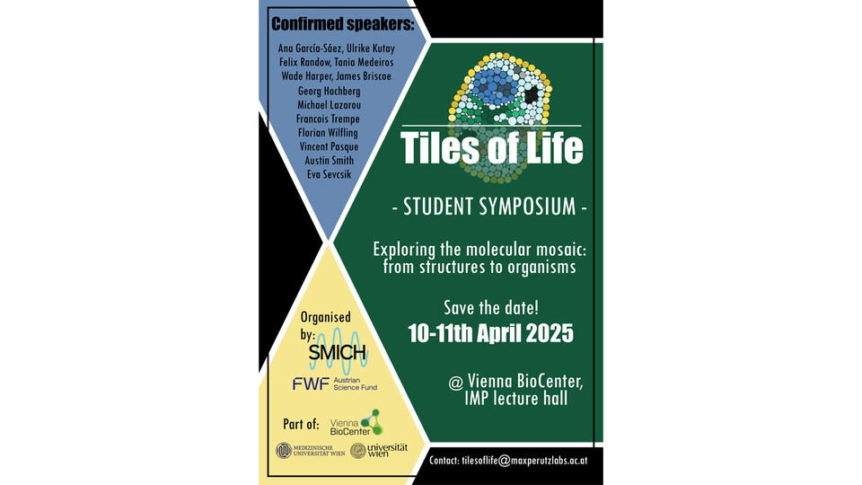 The symposium will explore the intricate "tiles" that form the vast and diverse fields of molecular biology and aims to foster discussions and inspire collaborations by bringing the “tiles of life” together. The program includes several talks by esteemed and international speakers sharing their latest findings to link the molecular mosaic of the cell - from structures to organisms. Additionally, we will highlight the research of the SMICH community on campus by complementing the program with student talks.