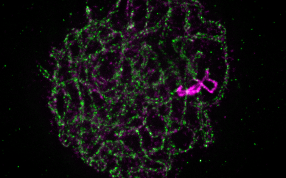 Unlike the more prominent homologous recombination (HR) mechanism, the non-homologous end joining mechanism (NHEJ) repairs DSBs by simply “stitching” the ends of DNA together. NHEJ has been thought to play no substantial role during meiosis, a view challenged by the findings of the Schlögelhofer lab. It turns out that NHEJ has an important function in repairing rDNA. Utilizing the model plant Arabidopsis thaliana, the researchers found that early in meiosis all of the hundreds of rDNA repeats localize in the nucleolus. There they are shielded from acquiring a meiosis-specific chromatin signature and from the canonical meiotic DSB machinery. Lesions within the rDNA are repaired via NHEJ, and not via HR, revealing an important role of NHEJ in maintaining the integrity of the rDNA over many generations.
