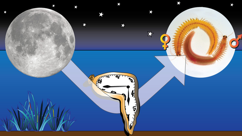 In order to produce the next generation, the marine bristle worm Platynereis dumerilii releases its eggs and sperm freely into the open seawater. The correct timing of their reproductive cycles is therefore essential for the survival of the species. It was already known that bristle worms schedule their reproduction to few days of the month. Now, the researchers uncovered that they also synchronize to very specific hours during each night. “We show that moonlight determines when, precisely, during the night the worms start their reproductive behavior, which is always during the darkest portion of the night” explains first author Martin Zurl. Rather than acting as the direct stimulus for swarming, moonlight changes the circadian clock period length. In nature, the time of moonlight changes every day by about 50 minutes. The plasticity of the clock allows the worms to factor in these changes.