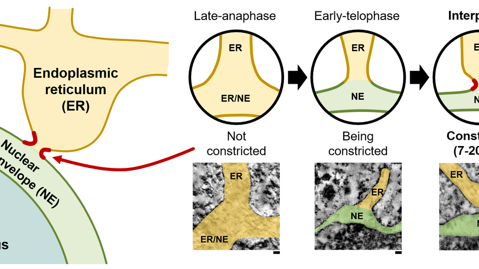ER-NE junctions, measuring only about 7–20 nanometers in width and being significantly less abundant, making their study inherently challenging. However, using quantitative three-dimensional electron microscopy, the Otsuka lab was able to investigate the morphology of these junctions. “Contrary to textbook knowledge, the ER-NE junctions differ to ER-ER junctions, as they are highly constricted”, Shotaro says. “Additionally, the junctions change morphology during the cell cycle. The constriction begins in the early phases of the cell cycle and matures to form fully specialized junctions by the end.” The proteins that stabilize this unique shape are, however, currently unknown and a future research focus.