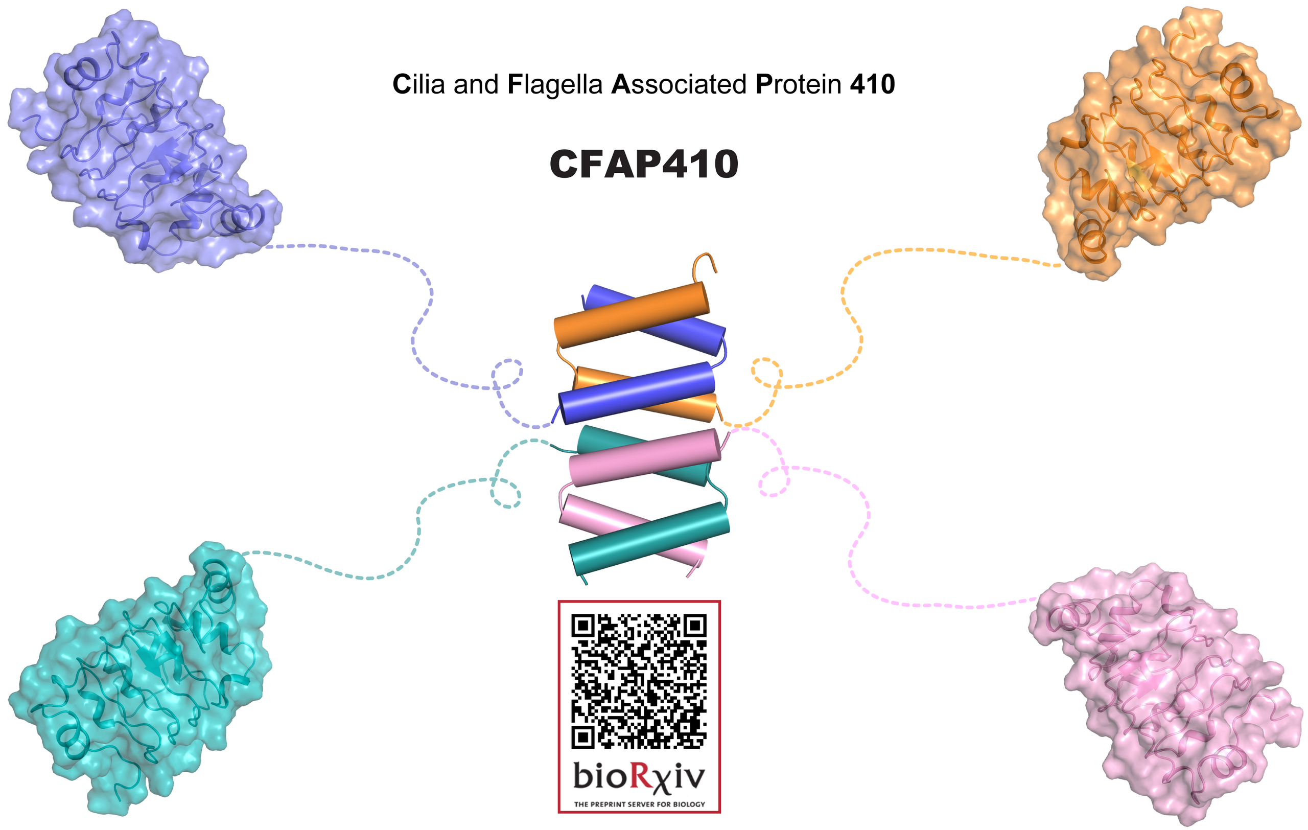 CFAP410 is a ciliary protein essential for ciliogenesis. Multiple point mutations in human CFAP410 have been identified in patients with severe ciliopathies. Our recent structural studies on three diversified CFAP410 homologs (H. sapiens, C. reinhardtii & T. brucei) reveal that CFAP410 is a bimodular protein forming a unique homo-tetramer. Taking together our in vivo data, we could now provide an explanation how these mutations in CFAP410 cause human diseases (Stadler et al. 2022, bioRxiv).