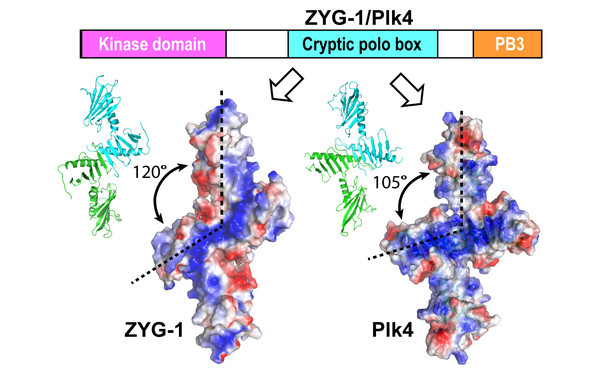 Polo-like kinase 4 (Plk4) has emerged as a master regulator of centriole duplication. We have reported crystal structures of the cryptic polo box of both Drosophila Plk4 and its C. elegans homolog ZYG-1. Our findings shed light on the conserved molecular mechanism underlying the recruitment of Plk4 and ZYG-1 to the nascent centriole (Shimanovskaya et al. 2014, Structure).