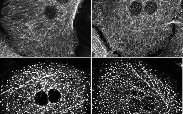 To further elucidate the biological function of epiplakin in epithelia, we are performing a combination of experiments using mouse injury models and experiments based on cell culture, biochemistry and video microscopy. In the mouse we use several stress models for simple epithelia in different organ systems which are com¬plemented by experiments with primary cells. In addition we use biochemical and cell culture based methods to investigate epiplakin’s interaction with sim¬ple epithelial keratins in more detail and to reveal the functions of epiplakin in keratin filament dynamics and network recovery after stress.