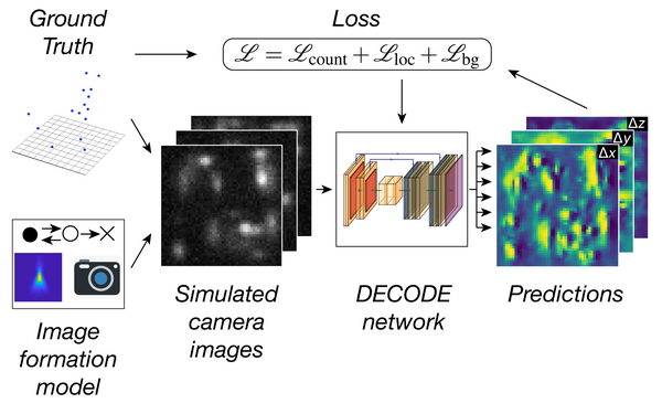We developed a software that uses simulator-based inference to localize fluorophores in 3D at high densities, increasing the speed of single-molecule localization microscopy by one order of magnitude. This software outperformed all other software in a public software benchmark on all modalities (Speiser, Müller et al., Nature Methods, 2021).