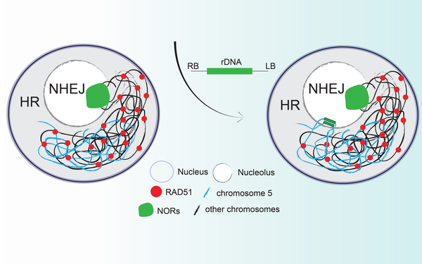 How are repetitive elements stably inherited from one generation to the next? How is non-allelic recombination between the nearly identical sequence repeats of ribosomal genes avoided? We established that rRNA genes are protected from the DSB and homologous recombination machinery within the nucleolus and that DNA breaks are repaired by “non-homologous DNA end joining”.